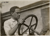 - Louis Strang, Herbert Lytle and Joe Seymour in back seat of automobile, 1909 Crown Point races