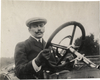 Louis Wagner in Fiat racecar after finish, 1908 Grand Prize races