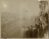Louis Wagner crossing finish line in Fiat racecar, 1908 Grand Prize races