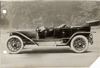 Lozier and Thomas-Detroit racecars parked in road, 1908 Grand Prize races