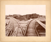Lumber-yard with railroad track and horse-drawn scrap cart