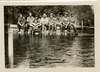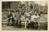 - Men posing on log over river, Company 1620, Civilian Conservation Corps, Camp Escanaba