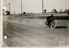 Motorcyclist Chamberlain racing motorcycle on track, 1911 Michigan State Fairgrounds meet