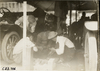 - Motorists examining automobile parts under tent, 1910 Glidden Tour