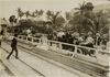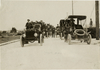 Motorists in 1905 White Steamer automobiles crossing bridge, Florida