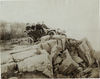 Motorists in 1906 Franklin automobile on rocky outcrop
