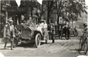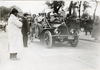 Motorists in 1908 Pierce Great Arrow automobile traveling on rural road, 1908 Glidden Tour