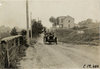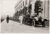 Motorists in Columbia automobile passing spectators in front of church, 1910 Hartford Endurance Run