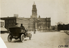 - Motorists in E-M-F automobile at garrison or barracks, 1909 Glidden pathfinding expedition