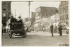 Motorists in Great Western automobile passing wooden-frame house, 1910 Munsey Historic Tour