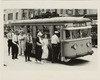 Passengers boarding Yellow Truck and Coach bus, Baltimore Transit