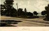 Road roller passing in front of grandstand, 1909 Crown Point races