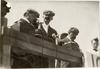 Robert Lee Morrell speaking with two racing officials, 1908 Grand Prize races