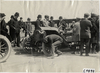 Robertson checking tire of Simplex racecar, 1909 Fort George Hill Climb