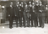 Salesmen posing on sidewalk, sales convention at Burroughs Adding Machine Company