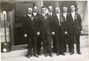 Salesmen posing in front of building, sales convention at Burroughs Adding Machine Company