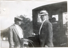 Salesmen standing next to automobile, sales convention at Burroughs Adding Machine Company