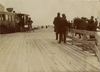Stanley Steamer automobile and locomotive on platform, Climb to the Clouds Hill Climb, 1904 White Mountains tour