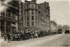 - Stearns automobiles lined up in street, 1909 Crippled Children's Outing