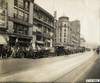 Stearns automobiles lined up in street, 1909 Crippled Children's Outing