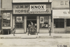 - Knox racecar exiting blacksmith shop, 1909 Crown Point races