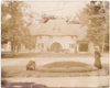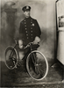 Policeman and announcer in front of press stand, 1908 Lowell road race