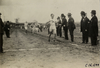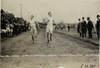 Runners and officials on building steps, 1911 Evening Mail Modified Marathon