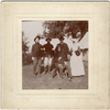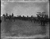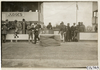 Soldiers and officials in front of judges' stand, 1910 Indianapolis races