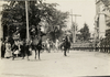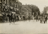 Soldiers on horseback and crowd waiting at railroad station, Custer memorial celebration