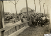 Spectators crossing railroad tracks, 1911 Indianapolis 500 automobile race