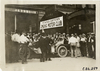 Spectators standing under banner, 1909 New York-Atlanta Good Roads Tour