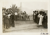 Spectators surrounding motorists in Cino automobile, 1910 Munsey Historic Tour
