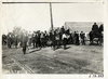 Spectators walking near Monogram oil banner, 1910 Shingle Hill Climb