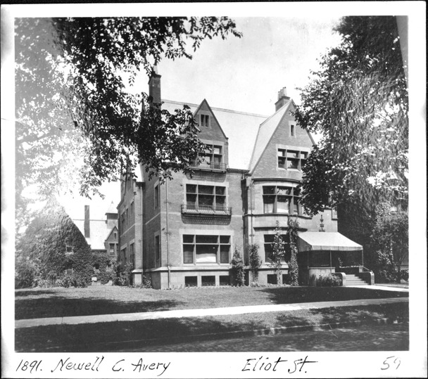 Favorite this☆ Newell C. Avery residence Description: Exterior view of the residence of Newell C. Avery. Written on photo front: "1891, Newell C. Avery, Eliot St., 59." Details Resource ID: MR0039 Creator: George D. Mason & Co. Subject: Dwellings--Michigan--Detroit Photographic prints Date Issued: 1891 Format: 1 photographic print ; 3.5 x 4 in. Member of: Burton Historical Collection Filing Location: D/Architecture-Mason & Rice Colln.-Historic Houses-Avery, Newell Rights: Physical rights are retained by DPL. Copyright is retained in accordance with U.S. copyright laws.