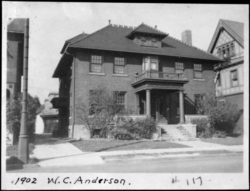 Favorite this☆ W.C. Anderson residence Description: Exterior view of the W.C. Anderson residence. Written on photo front: "1902, W.C. Anderson, #117." Details Resource ID: MR0049 Creator: George D. Mason & Co. Subject: Dwellings--Michigan--Detroit Photographic prints Date Issued: 1902 Format: 1 photographic print ; 2.5 x 3.25 in. Member of: Burton Historical Collection Filing Location: D/Architecture-Mason & Rice Colln.-Historic Houses-Anderson, W.C. Rights: Physical rights are retained by DPL. Copyright is retained in accordance with U.S. copyright laws.