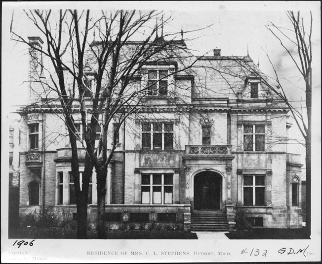 Favorite this☆ C.L. Stephens residence Description: Exterior view of the Stephens' residence. Written on photo front: "1906, residence of Mrs. C.L. Stephens, Detroit, Mich. #132, G.D.M." Details Resource ID: MR0050 Creator: George D. Mason & Co. Subject: Dwellings--Michigan--Detroit Photographic prints Date Issued: 1906 Format: 1 photographic print ; 3.5 x 4.25 in. Member of: Burton Historical Collection Filing Location: D/Architecture-Mason & Rice Colln.-Hist. Houses-Stephens, Mrs. C.L. Rights: Physical rights are retained by DPL. Copyright is retained in accordance with U.S. copyright laws.