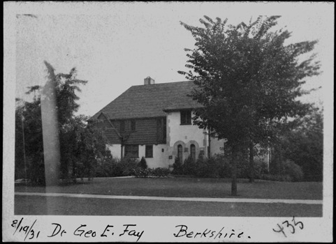 Exterior view ot the Fay residence. Written on photo front: "8/19/31, Dr. Geo. E. Fay, Berkshire. 435."