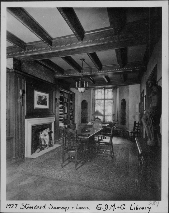 Favorite this☆ Standard Savings and Loan library Description: Interior view of the library at the Standard Savings & Loan. Written on photo front: "1927, Standard Savings & Loan, #289, G.D.M. & Co. Library." Details Resource ID: MR0130 Creator: George D. Mason & Co. Subject: Banks and banking--Michigan--Detroit Bank buildings--Michigan--Detroit Special libraries--Michigan--Detroit Photographic prints Date Issued: 1927 Format: 1 photographic print ; 4.5 x 3.5 in. Member of: Burton Historical Collection Filing Location: D/Architecture-Mason & Rice Colln. Rights: Physical rights are retained by DPL. Copyright is retained in accordance with U.S. copyright laws.