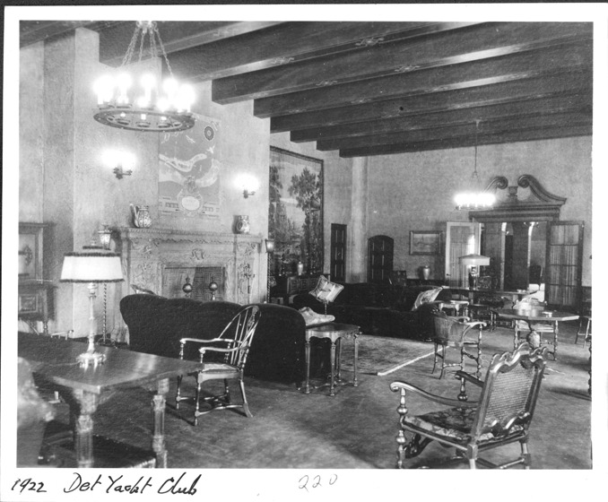 Favorite this☆ Detroit Yacht Club interior Description: Sitting room with high wooden-beamed ceiling, sofas in front of large fireplace, electric lights on ceiling and wall. Written on photo front: "1922, Det. Yacht Club, 220." Details Resource ID: MR0176 Creator: George D. Mason & Co. Subject: Yacht clubs--Michigan--Detroit Living rooms--Michigan--Detroit Photographic prints Date Issued: 1922 Format: 1 photographic print ; 3.75 x 4.5 in. Member of: Burton Historical Collection Filing Location: D/Architecture-Mason & Rice Colln.-D.Y.C. Rights: Physical rights are retained by DPL. Copyright is retained in accordance with U.S. copyright laws.