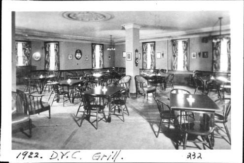 Favorite this☆ Detroit Yacht Club Grill Description: Interior view of the Detroit Yacht Club Grill, with tables and chairs. Written on photo front: "1922, D.Y.C. Grill, 232." Details Resource ID: MR0177 Creator: George D. Mason & Co. Subject: Yacht clubs--Michigan--Detroit Restaurants--Michigan--Detroit Photographic prints Date Issued: 1922 Format: 1 photographic print ; 2.25 x 3.25 in. Member of: Burton Historical Collection Filing Location: D/Architecture-Mason & Rice Colln.-D.Y.C. Rights: Physical rights are retained by DPL. Copyright is retained in accordance with U.S. copyright laws.