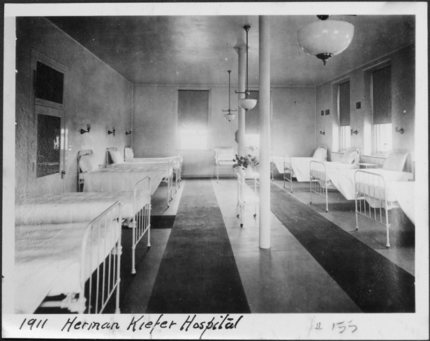Favorite this☆ Herman Kiefer Hospital ward room Description: View of a ward room at Herman Kiefer Hospital, with beds against walls on either side of room. Written on photo front: "1911, Herman Kiefer Hospital, 155." Details Resource ID: MR0199 Creator: George D. Mason & Co. Subject: Hospital architecture--Michigan--Detroit Hospital wards--Michigan--Detroit Photographic prints Date Issued: 1911 Format: 1 photographic print ; 3.25 x 4 in. Member of: Burton Historical Collection Filing Location: D/Architecture-Mason & Rice Colln. Rights: Physical rights are retained by DPL. Copyright is retained in accordance with U.S. copyright laws.