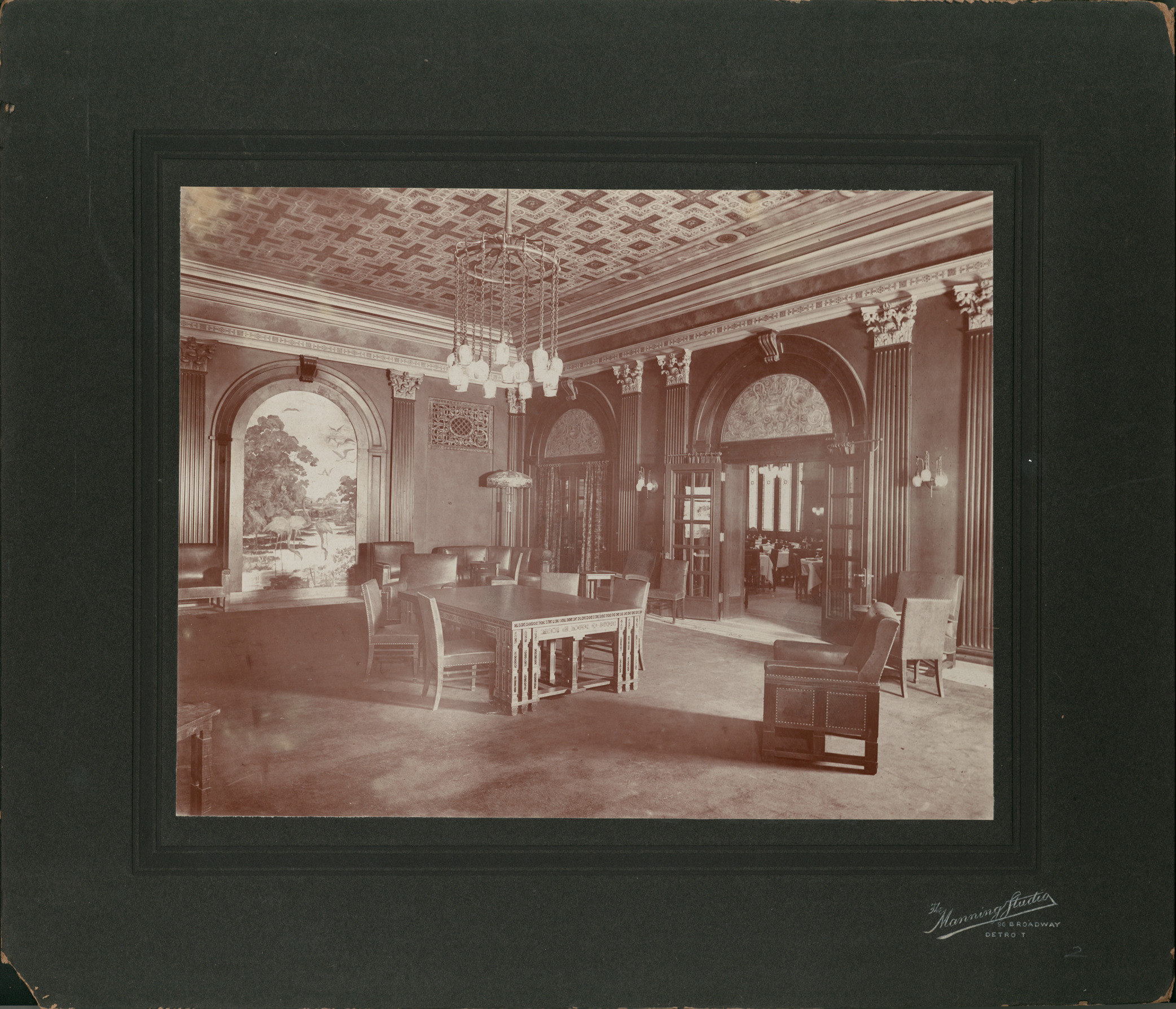 Favorite this☆ Ponchartrain Hotel public room Description: Interior of the Ponchartrain Hotel next to dining room, with leather chairs and a table. Printed on photo front: "The Manning Studio, 96 Broadway, Detroit." Details Resource ID: MR0230 Creator: George D. Mason & Co. Manning Studio Subject: Hotels--Michigan--Detroit Furniture--Michigan--Detroit Photographers--Michigan--Detroit Albumen prints Photographic prints Date Issued: 1907 Format: 1 photographic print mounted on mat board ; image 7.5 x 9.75 in. Member of: Burton Historical Collection Filing Location: D/Architecture-Mason & Rice Colln. Rights: Physical rights are retained by DPL. Copyright is retained in accordance with U.S. copyright laws.
