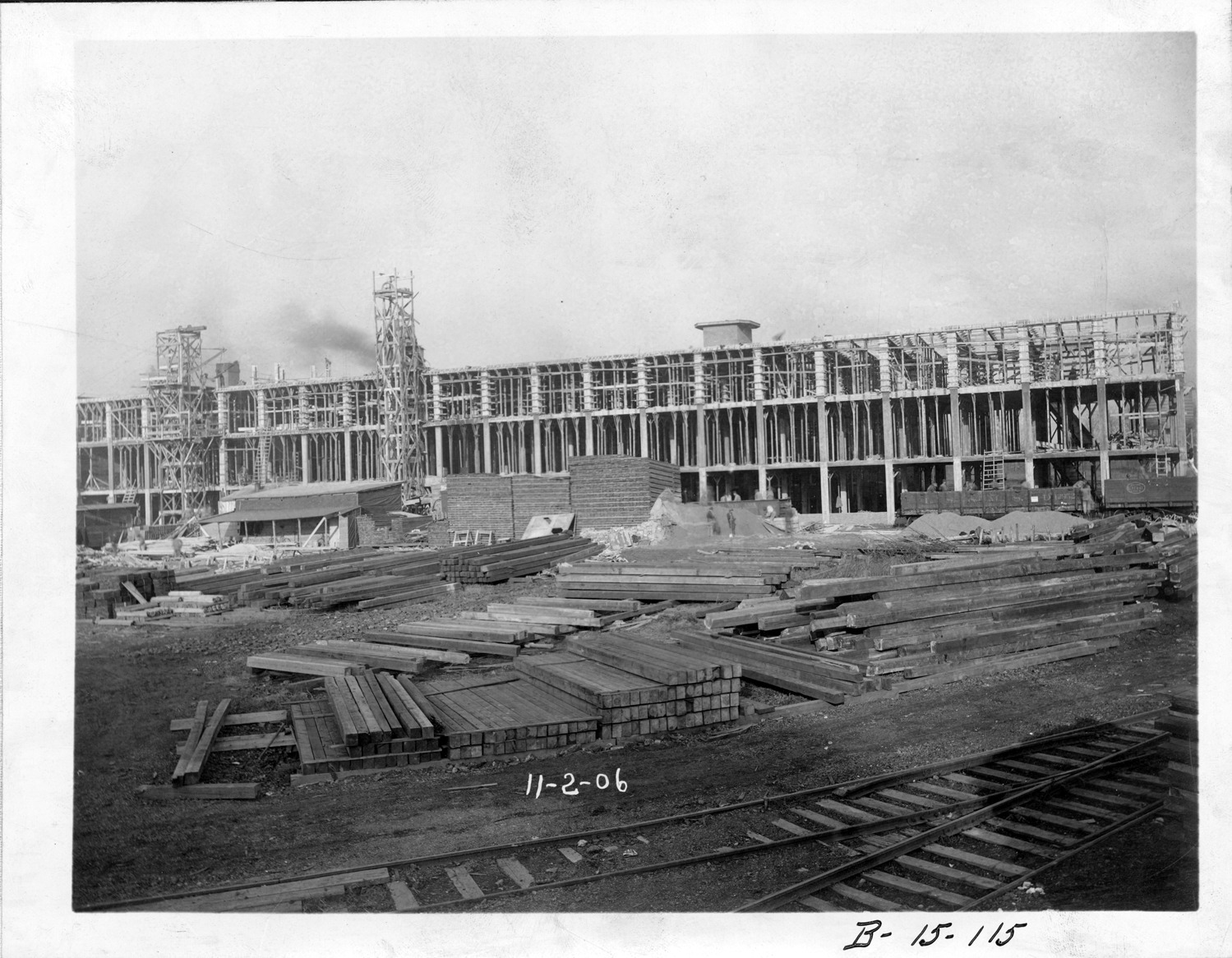 Exterior of Anderson Carriage Company. Written on photo front: "11-2-06, B-15-115."