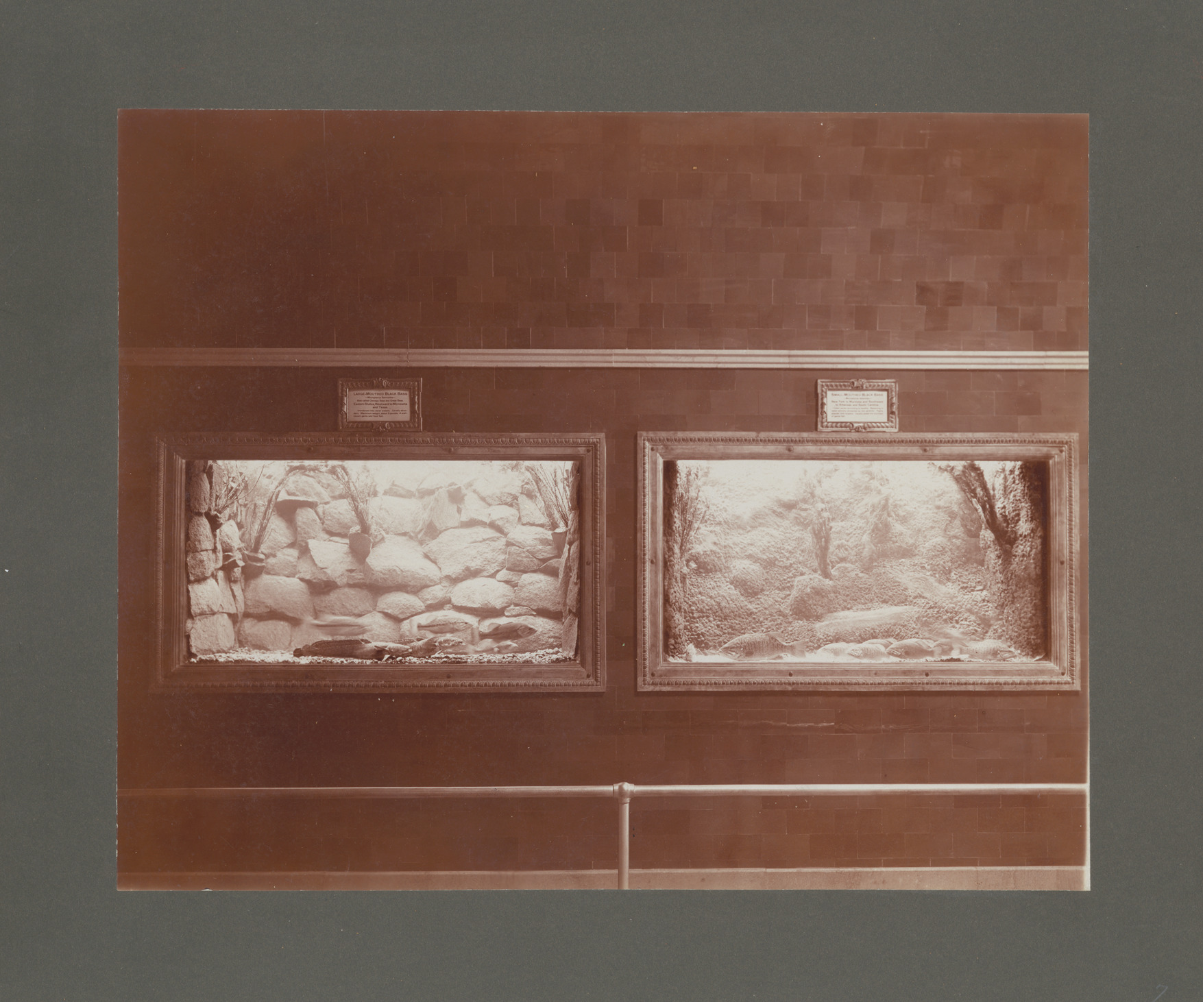 Favorite this☆ Belle Isle Aquarium display tanks Description: Interior of Belle Isle Aquarium showing two display tanks. Written on photo back: "The Baker Art Studio, portrait and commercial photographers, 35-37-39 Monroe, Detroit, Mich." Details Resource ID: MR0291 Creator: George D. Mason & Co. Baker Studio Subject: Aquariums, Public--Michigan--Detroit Photographers--Michigan--Detroit Albumen prints Photographic prints Date Issued: 1903 Format: 1 photographic print mounted on mat board ; image 7.75 x 9.5 in. Member of: Burton Historical Collection Filing Location: D/Architecture-Mason & Rice Colln.-Belle Isle Aquarium Rights: Physical rights are retained by DPL. Copyright is retained in accordance with U.S. copyright laws.