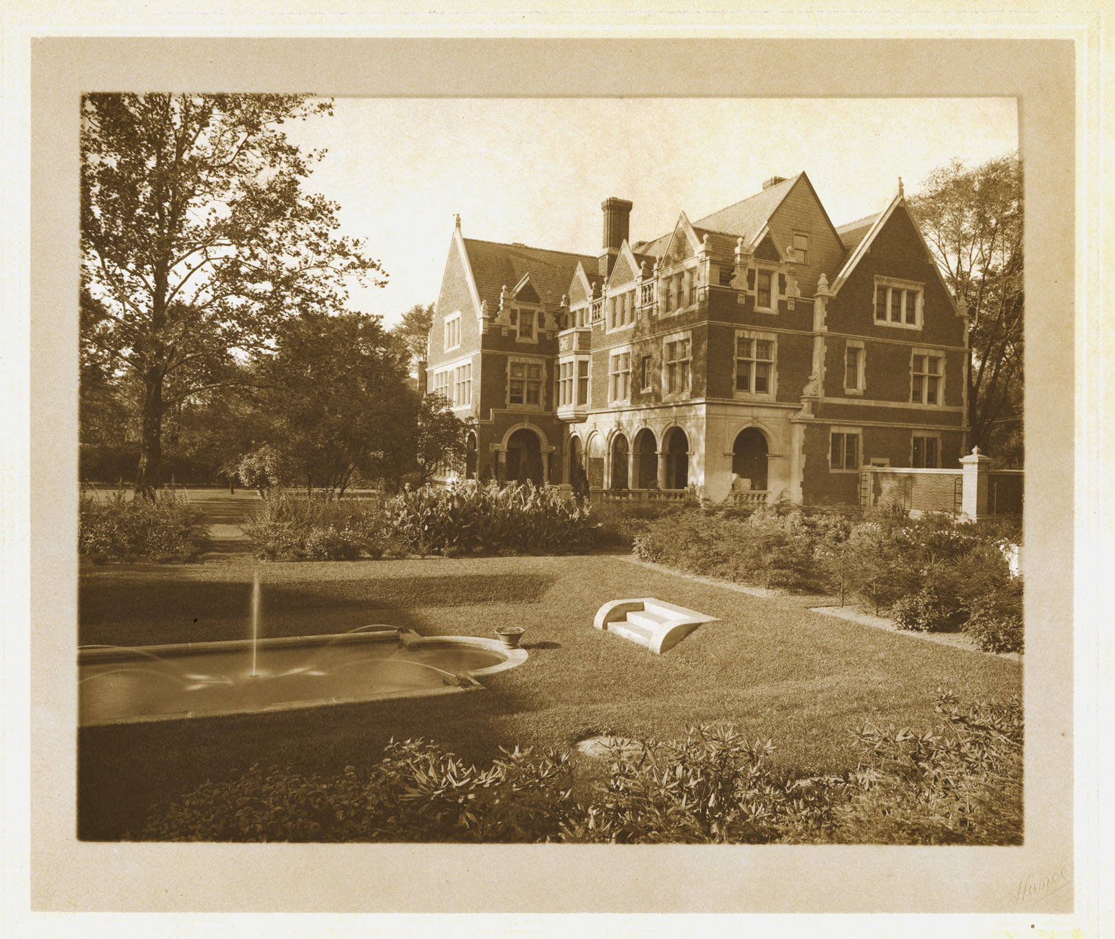 Favorite this☆ Lemuel W. Bowen residence Description: Exterior of the Bowen residence showing garden and pond with fountains. Stamped on photo front "Hance." Written on photo back: "Residence of Lemuel W. Bowen-Residence L.W. Bowen-1145 Woodward." Details Resource ID: MR0319 Creator: Hance, George W. Subject: Dwellings--Michigan--Detroit Gardens--Michigan--Detroit Water gardens--Michigan--Detroit Bowen family--Homes and haunts--Michigan--Detroit Photographers--Michigan--Detroit Photographic prints Date Issued: 1912 Format: 1 photographic print ; 7.25 x 9.25 in. Member of: Burton Historical Collection Filing Location: D/Architecture-Mason & Rice Colln. Rights: Physical rights are retained by DPL. Copyright is retained in accordance with U.S. copyright laws.