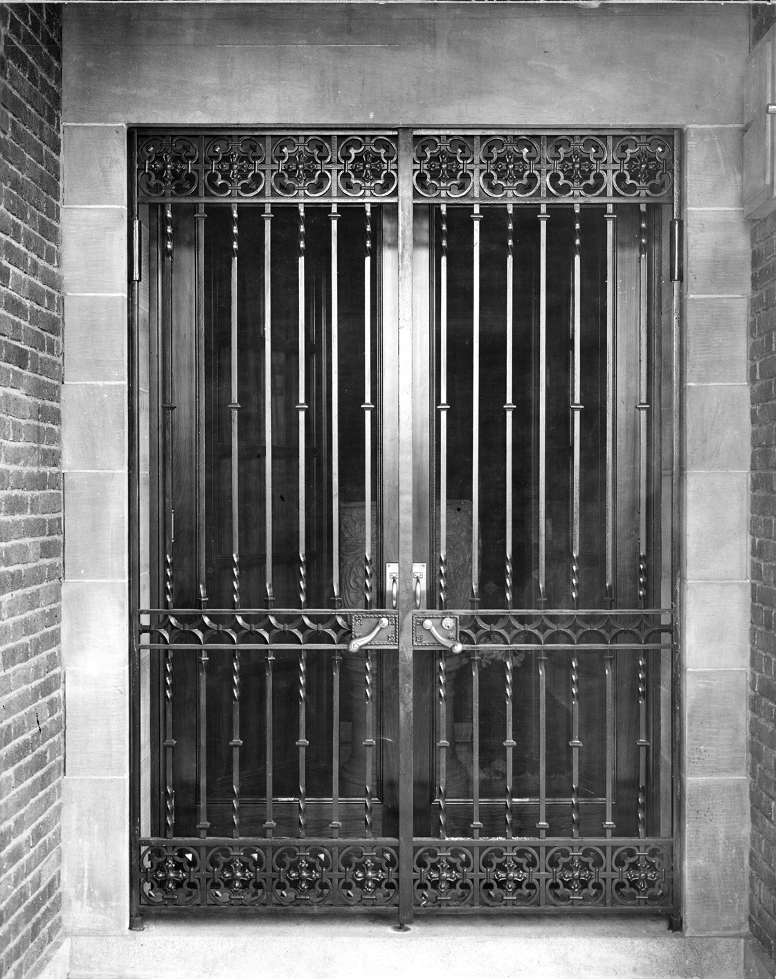 Favorite this☆ Lemuel W. Bowen residence gate Description: Exterior of the Bowen residence showing iron gate in front of door. Stamped on photo back: "Manning Bros., commercial photographers, 22-24 Witherell St., Detroit, Mich., J.E. Bolles Iron & Wire Works." Details Resource ID: MR0346 Creator: George D. Mason & Co. Manning Brothers Subject: Gates--Michigan--Detroit Wrought-iron--Michigan--Detroit Dwellings--Michigan--Detroit Photographers--Michigan--Detroit Photographic prints Date Issued: 1912 (year approximate) Format: 1 photographic print ; 9.5 x 7.5 in. Member of: Burton Historical Collection Filing Location: D/Architecture-Mason & Rice Colln.-Lemuel Warner Bowen Res. Rights: Physical rights are retained by DPL. Copyright is retained in accordance with U.S. copyright laws.