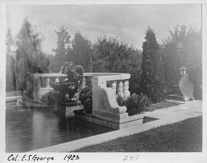 Fountain and pool at the Edwin S. George residence. Written on photo front: "1923, Col. E.S. George, 247."