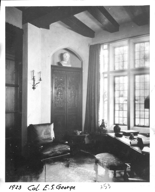 Favorite this☆ Edwin S. George residence interior Description: Interior of the Edwin S. George residence showing a possible office, desk and padded stool in view. Written on photo front: "1923, Col. E.S. George, 253." Details Resource ID: MR0444 Creator: George D. Mason & Co. Ellison, Thomas Subject: George, Edwin S., 1873-1951--Homes and haunts--Michigan--Bloomfield Hills Dwellings--Michigan--Bloomfield Hills Photographers--Michigan--Detroit Photographic prints Date Issued: 1923 Format: 1 photographic print ; 4.5 x 3.5 in. Member of: Burton Historical Collection Filing Location: D/Architecture-Mason & Rice Colln.-Edwin S. George residence Rights: Physical rights are retained by DPL. Copyright is retained in accordance with U.S. copyright laws.