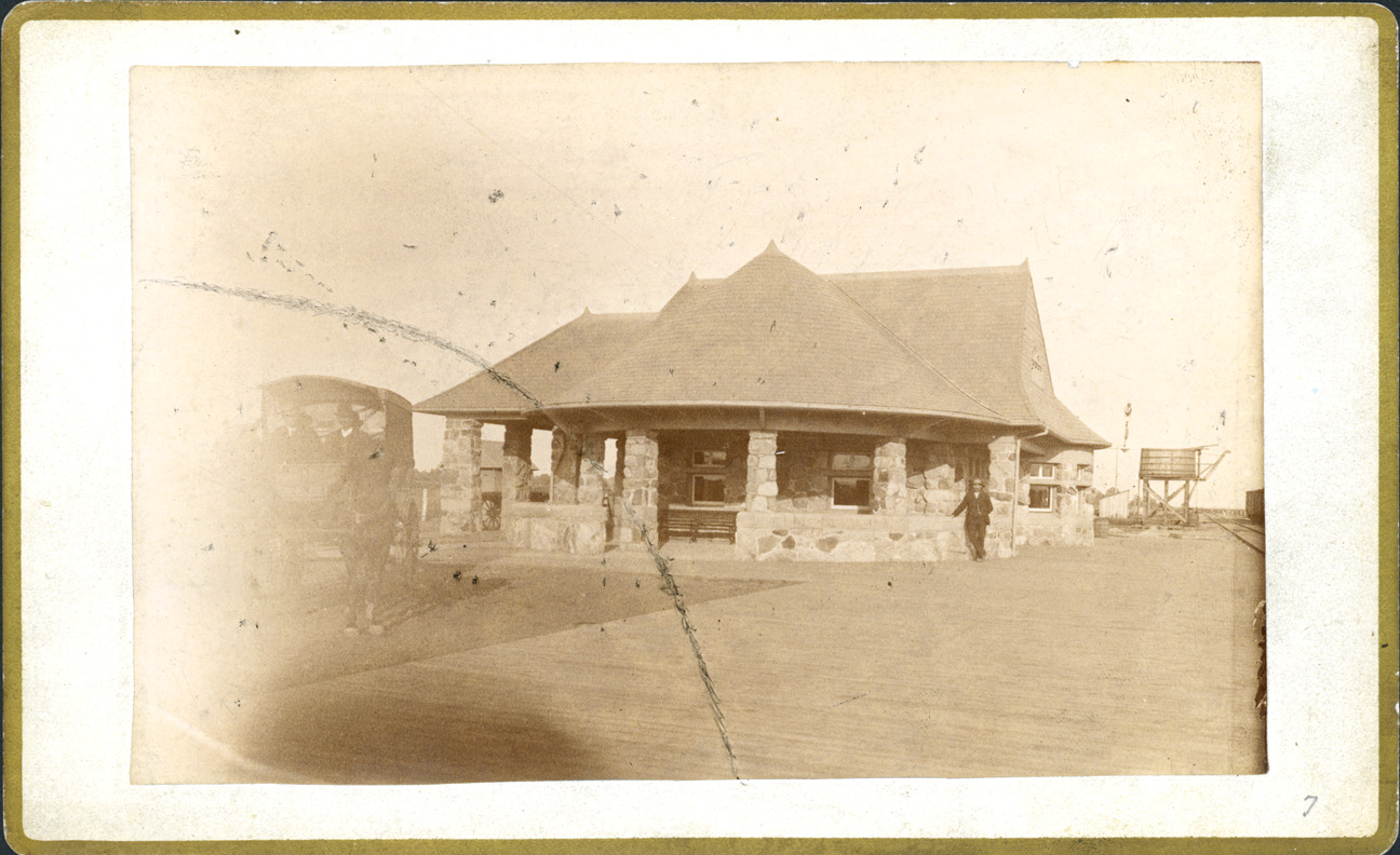 Favorite this☆ Kingsville Ontario Railway Station Description: Exterior of the Kingsville Ontario Railway Station. Written on photo back: "Railway Station-Kingsville-Ont., 1889." Details Resource ID: MR0471 Creator: George D. Mason & Co. Subject: Railroad stations--Ontario--Kingsville Albumen prints Photographic prints Date Issued: 1889 Format: 1 photographic print mounted on mat board ; image 4.5 x 7 in. Member of: Burton Historical Collection Filing Location: D/Architecture-Mason & Rice Colln.-Kingsville Ontario Railway Station Rights: Physical rights are retained by DPL. Copyright is retained in accordance with U.S. copyright laws.