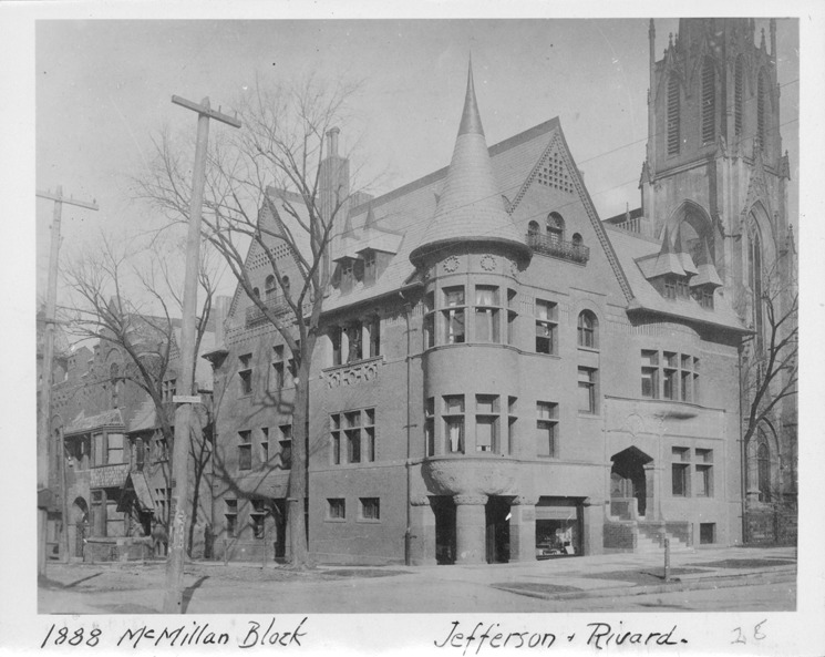 Exterior of William C. McMillan home. Written on photo front: " 1888, McMillan Block-Jefferson & Rivard, 28."